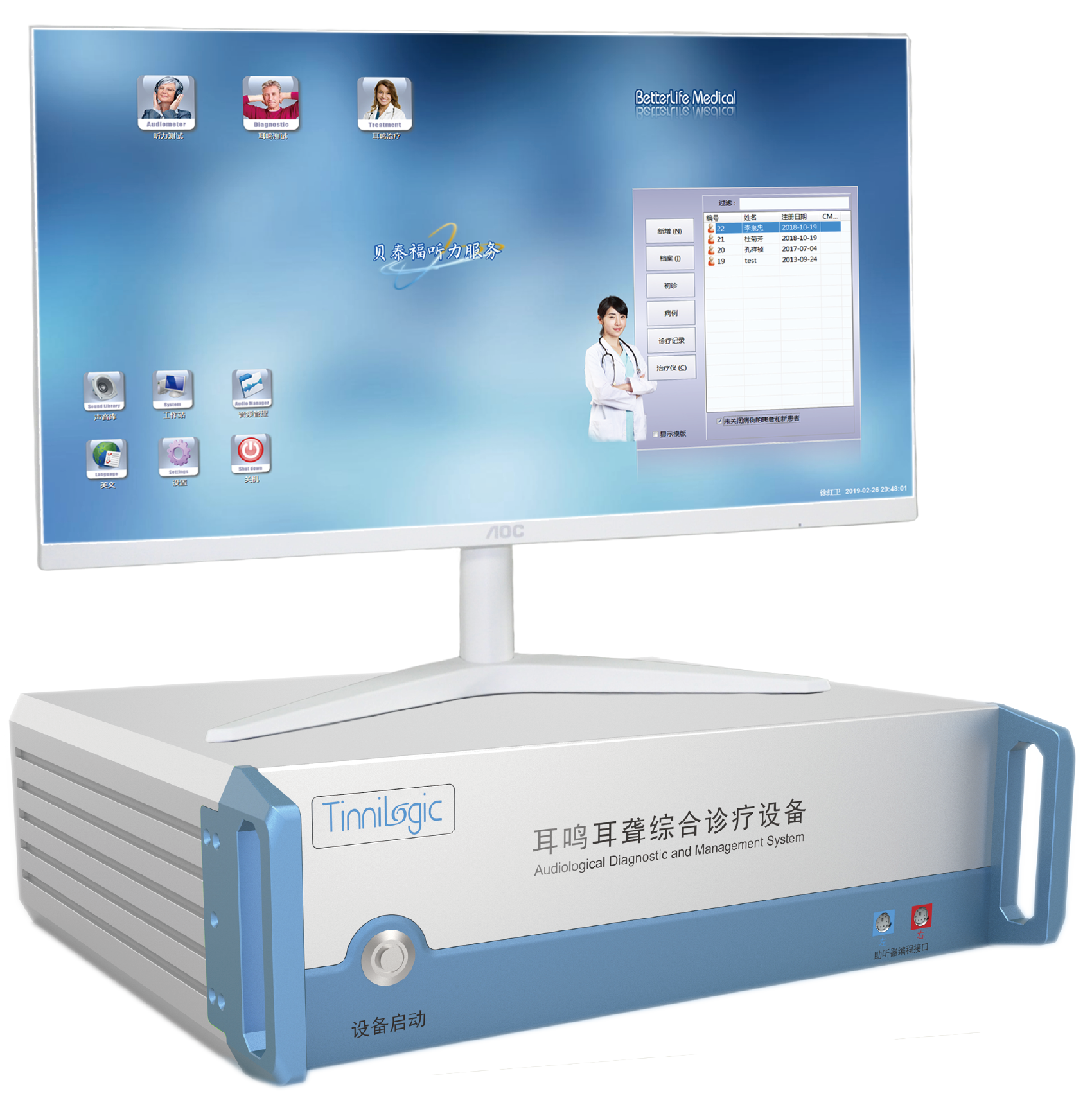 符合2014年美國(guó)耳鼻咽喉頭頸外科學(xué)會(huì)(AAO-HNS,American Academy of Otolaryngology-Head and Neck Surgery)發(fā)布的第一部耳鳴臨床指南《Clinical Practice Guideline:Tinnitus》,結(jié)合美國(guó)聽(tīng)力科學(xué)院院士(FAAA)、美國(guó)耳鳴醫(yī)師協(xié)會(huì)(TPA)主席Dr.Natan Bauman教授30多年臨床經(jīng)驗(yàn)以及現(xiàn)代全數(shù)字智能化聲學(xué)、聽(tīng)力學(xué)、神經(jīng)電生理和數(shù)字信號(hào)處理技術(shù),將多種功能一體化,可實(shí)現(xiàn)全套、獨(dú)立或系統(tǒng)操作,自動(dòng)生成和打印診療報(bào)告、遠(yuǎn)程診療、數(shù)字診療信息處理等功能。