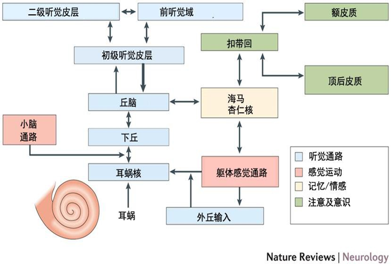 耳鳴及神經(jīng)功能障礙疾病是腦神經(jīng)電信號紊亂或缺失所導致的病癥,本質(zhì)是腦神經(jīng)系統(tǒng)問題,目前國際學術前沿主流是中樞發(fā)病機制,涉及到“生理”和“心理”兩大部分的交互影響。