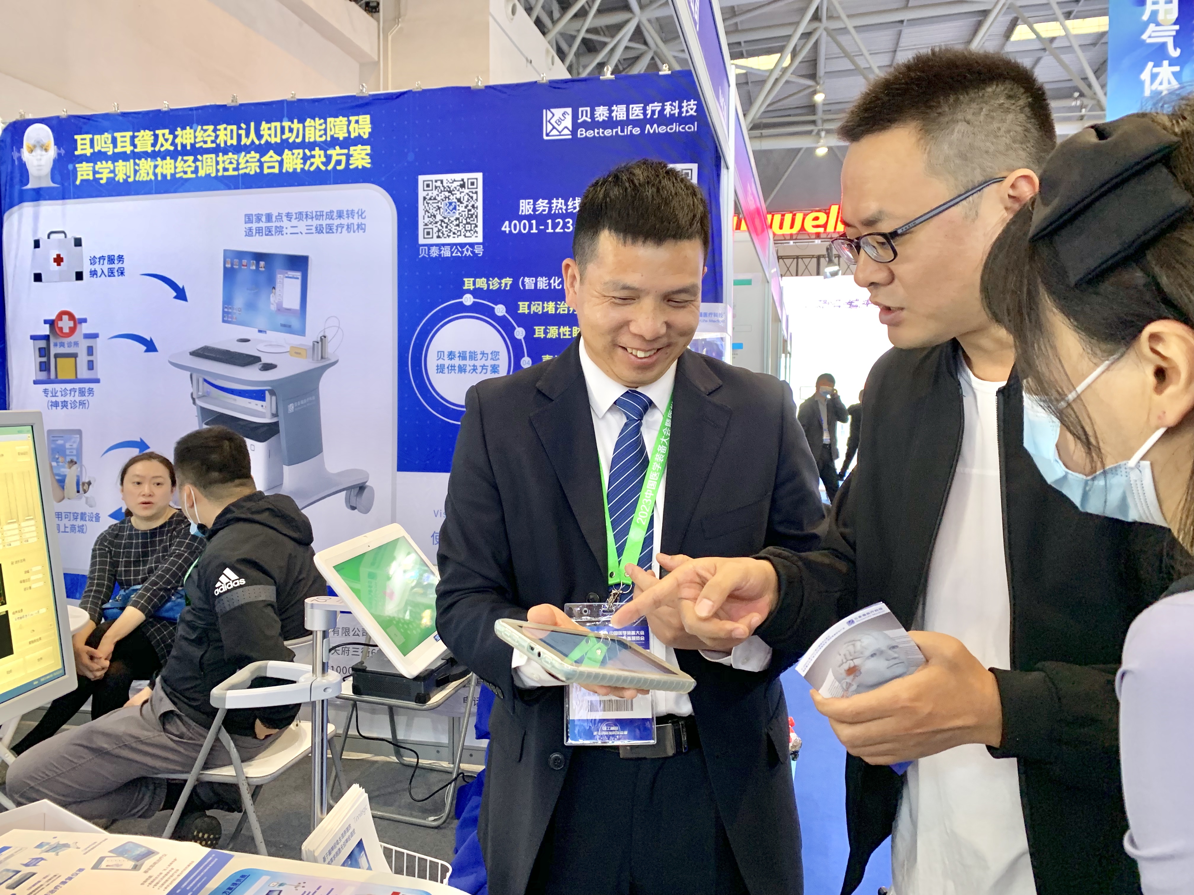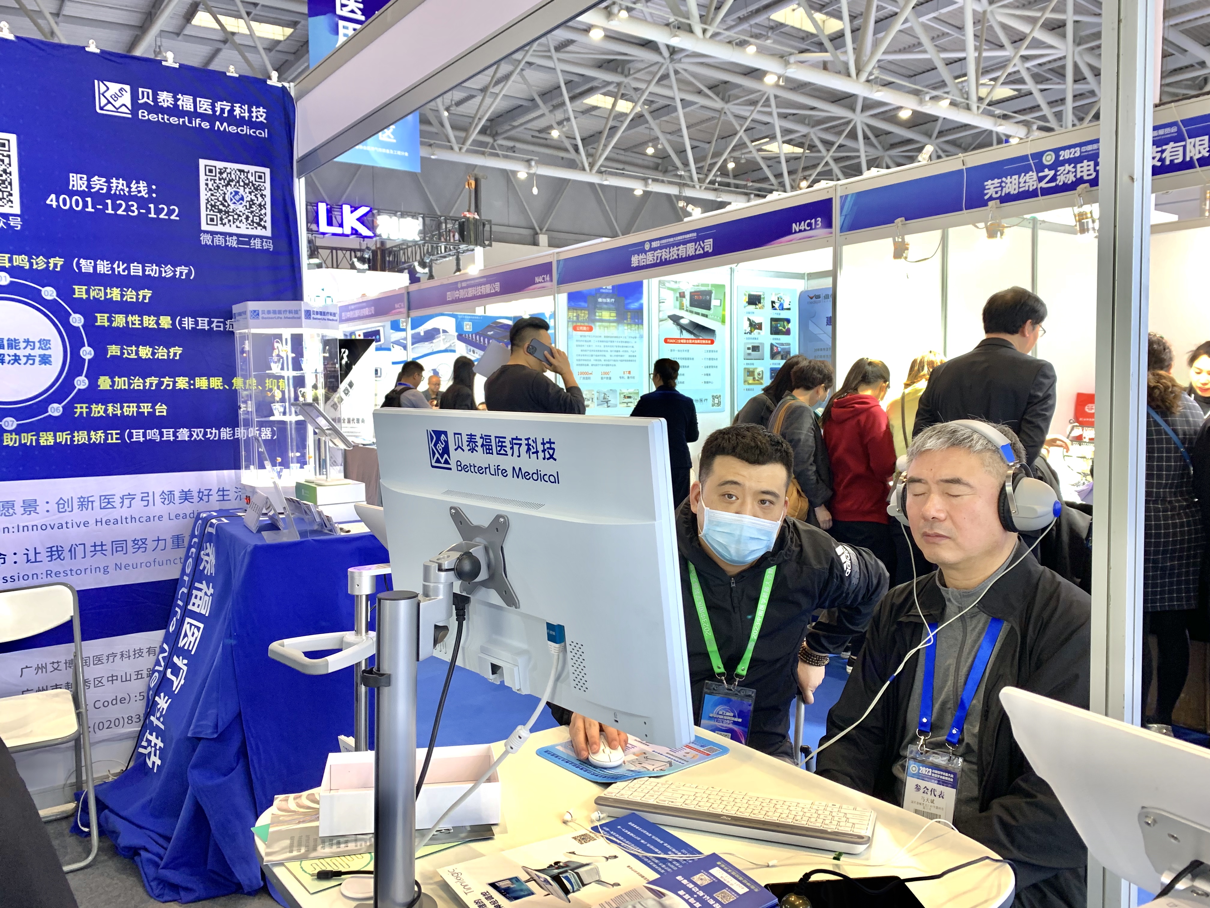 本次貝泰福展出了耳鳴耳聾綜合診療設(shè)備C系列、D系列,以及搭配使用的耳鳴診療中心及病房管理系統(tǒng)、家用康復(fù)設(shè)備等自主研發(fā)的產(chǎn)品,開展首日便憑借著業(yè)界前沿的產(chǎn)品技術(shù)吸引眾多客戶駐足,了解產(chǎn)品+技術(shù)解決方案、技術(shù)服務(wù)以及對(duì)耳鳴耳聾及神經(jīng)和認(rèn)知功能障礙發(fā)展技術(shù)趨勢(shì)探討,友好交流,共話行業(yè)發(fā)展。
