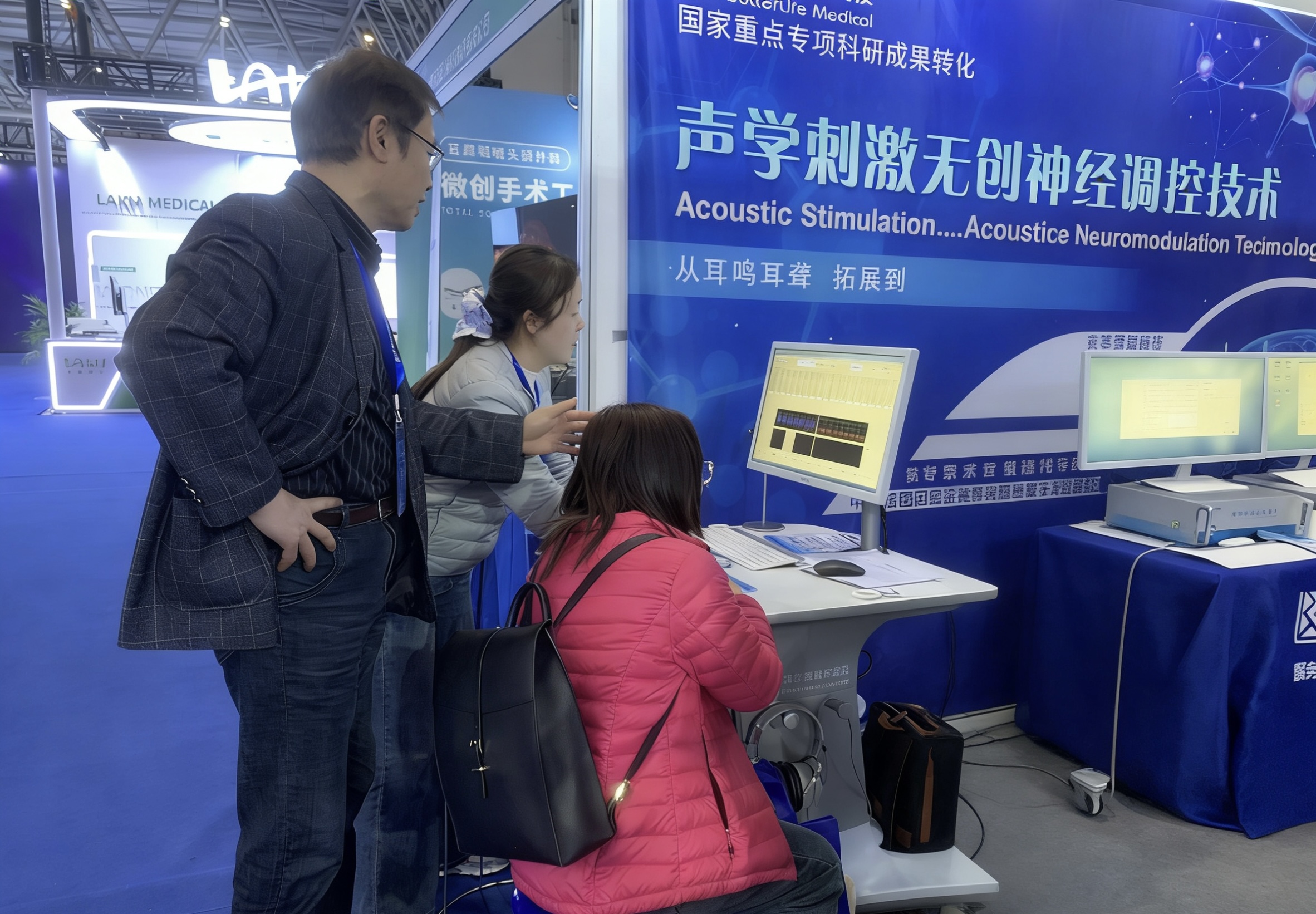 貝泰福的核心技術(shù)為聲學(xué)刺激無創(chuàng)神經(jīng)調(diào)控,該技術(shù)通過特定的聲學(xué)刺激信號,對神經(jīng)系統(tǒng)進(jìn)行調(diào)控,這一技術(shù)突破了傳統(tǒng)治療的局限,為耳鳴耳聾及神經(jīng)認(rèn)知功能障礙患者提供了全新的、無創(chuàng)的全方位解決方案,吸引了眾多與會專家、學(xué)者及醫(yī)療同行的駐足交流與深度咨詢。
