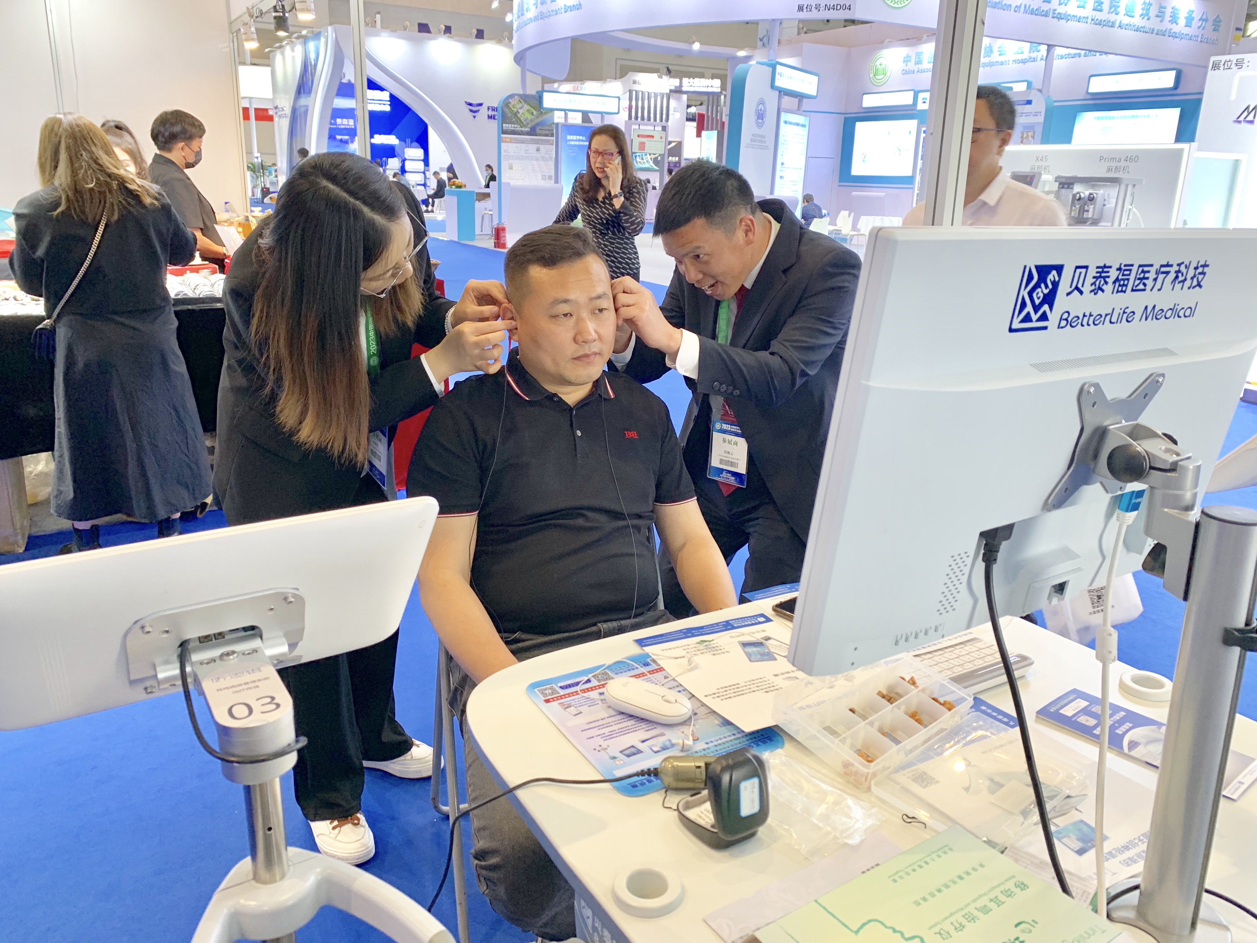 本次貝泰福展出了耳鳴耳聾綜合診療設(shè)備C系列、D系列,以及搭配使用的耳鳴診療中心及病房管理系統(tǒng)、家用康復(fù)設(shè)備等自主研發(fā)的產(chǎn)品,開展首日便憑借著業(yè)界前沿的產(chǎn)品技術(shù)吸引眾多客戶駐足,了解產(chǎn)品+技術(shù)解決方案、技術(shù)服務(wù)以及對(duì)耳鳴耳聾及神經(jīng)和認(rèn)知功能障礙發(fā)展技術(shù)趨勢(shì)探討,友好交流,共話行業(yè)發(fā)展。