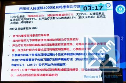 大會(huì)執(zhí)行主席、四川省 耳鼻咽喉外科學(xué)會(huì)副會(huì)長(zhǎng)、四川省人民醫(yī)院耳鼻咽喉頭頸外科主任 何剛教授,在大會(huì)上做了專題學(xué)術(shù)報(bào)告“四川省人民醫(yī)院4000例耳鳴患者聲治療+認(rèn)知行為心理治療總結(jié)”,講解了耳鳴中樞機(jī)制和臨床指南,回顧了使用貝泰福專利耳鳴耳聾產(chǎn)品技術(shù)在四川省人民醫(yī)院臨床治療4000例耳鳴患者的心得體會(huì)和歸納總結(jié):