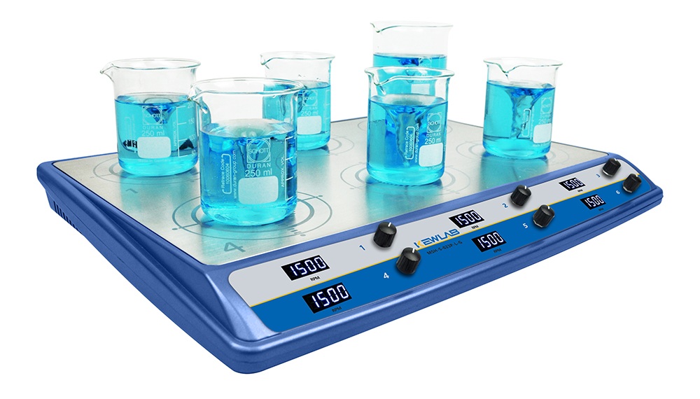 A:方案一:多工位磁力攪拌器(如KEWLAB MSH-S-023P-L-G六聯(lián)),各工位獨立控制,適合平行實驗。?方案二:大平臺攪拌器配多個小容器,注意容器間距≥5cm避免磁場干擾,容器規(guī)格應(yīng)一致,總負載不超70%最大攪拌量。